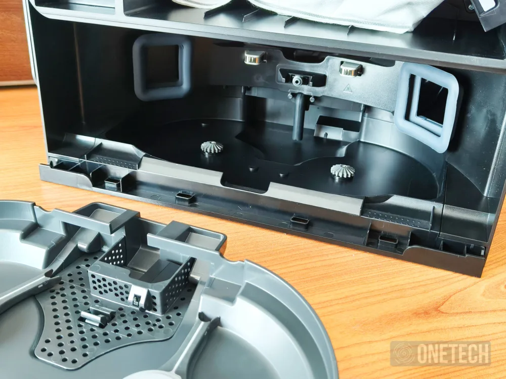Si bien el robot se vacía cada vez que regresa a la base, en la limpieza usa un deposito que podemos limpiar o cambiar en caso de que haga falta. El filtro que integra este deposito también se ocupa de que el aire que se expulse durante el aspirado no lleve restos de polvo o suciedad.
