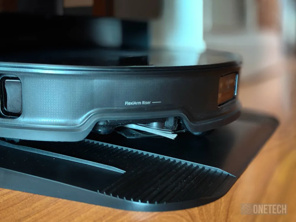 Con una capacidad de succión de 22.000 Pa, gracias a su sistema de brazos extensibles es capaz de colocarse en zonas complejas y alcanzar esquinas casi a la perfección. Tanto su cepillo lateral como la mopa extensible funcionan a la perfección cuando son necesarios, algo que no solo se limita a llegar a esquinas o rodapiés, sino que podemos configurarlo para que se meta debajo de los bordes de los muebles como sofás bajos. Lógicamente lo hace solo un par de centímetros, pero lo suficiente para evitar que la limpieza deja una linea de polvo en los bajos del sofá o muebles demasiado bajos para que pase el robot.