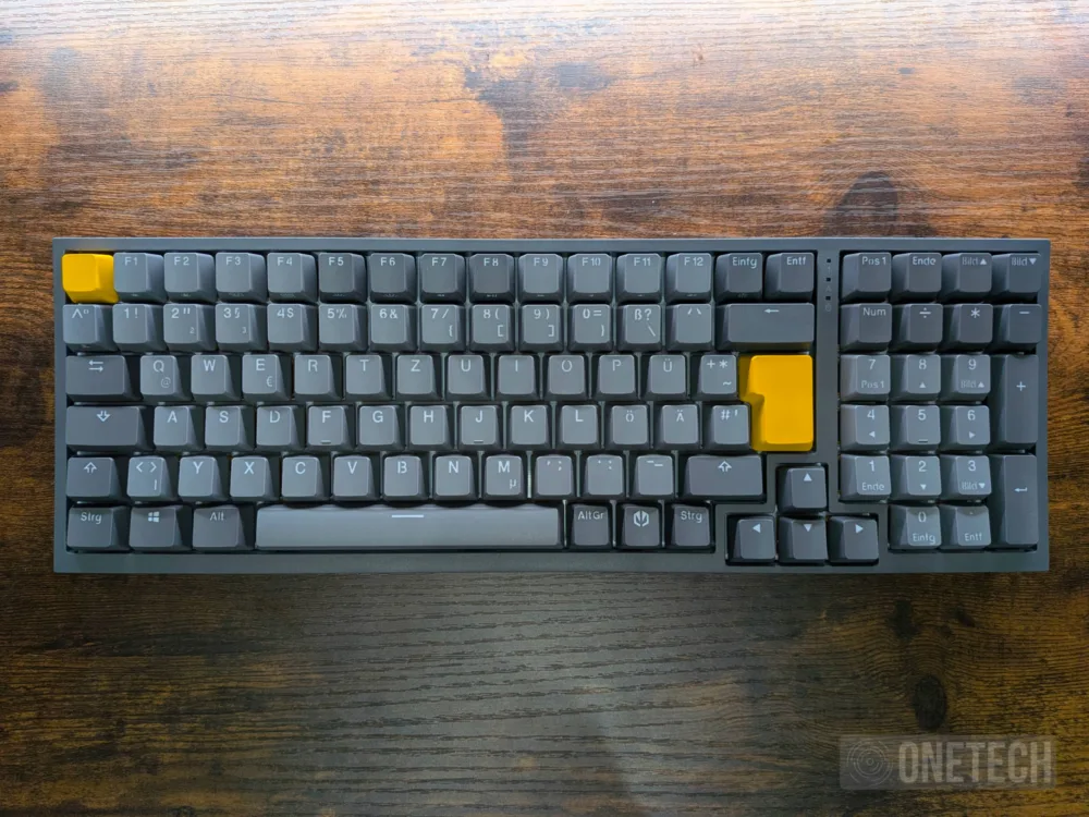 Con una combinación de tonos grises, podemos aportarle un toque de color con las teclas de color amarillo incluidas. Aunque de inicio nos viene configurado con las teclas para usarlo con Windows, contamos con un set de teclas que podemos usar para que el teclado adopte el estilo Mac, con lo que no solo tendremos la funcionalidad, sino también las teclas del formato de los teclados Apple.