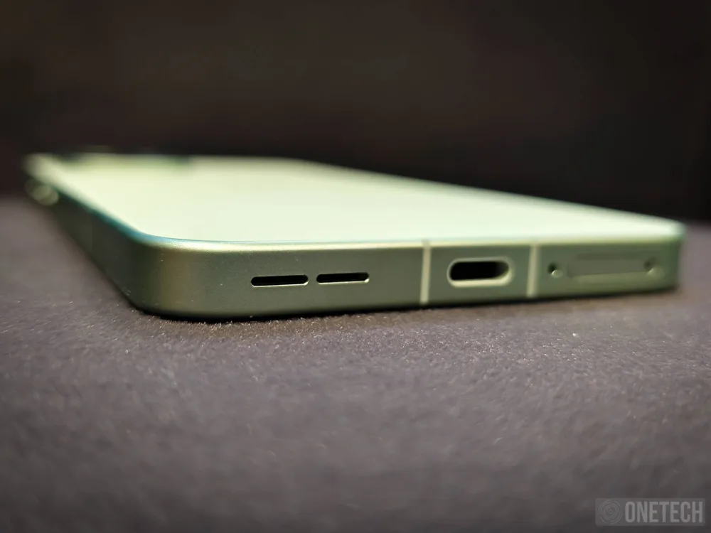 Mientras que en la parte superior del marco tenemos solo un emisor IR y dos micrófonos, en la parte inferior encontramos un altavoz, la bandeja doble para las nanoSIM y el puerto USB, el cual si bien es cierto que es USB C, lo es en su versión USB 2.0, una disminución notable si lo comparamos con el USB 3.2 Gen 1 que monta el OnePlus 15. Del mismo modo, si bien ambos modelos cuentan con Audio OReality, en el caso del OnePlus 15R no tenemos sistema de cancelación de ruido en los micrófonos, por lo que la calidad de las llamadas no es tan buena.