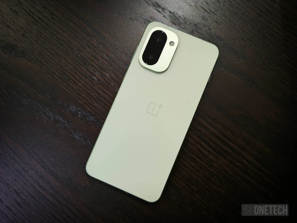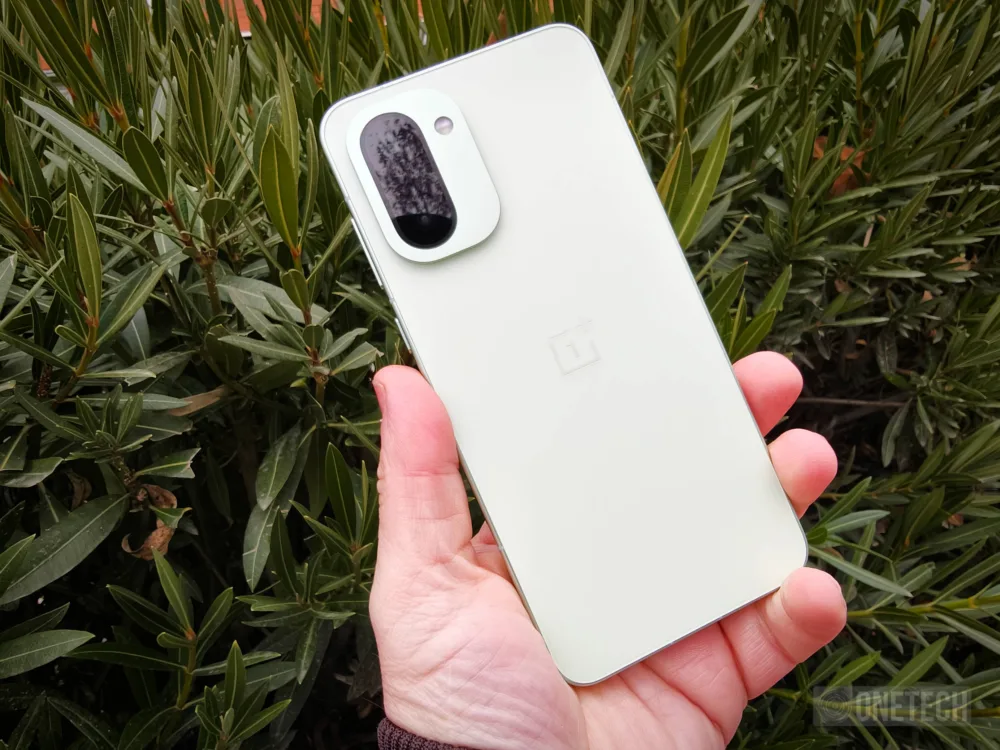OnePlus no es ajeno a las nuevas tendencias de diseño y nos ofrece un terminal que deja de lado las estridencias y los diseños llamativos en favor de líneas más puras y acabados más minimalistas. Disponible en colores Charcoal Black y Mint Breeze, en mi caso he probado este último, que se distingue del modelo más oscuro al optar por color verde menta suave, mate en su acabado y sedoso al tacto, que de forma sorprendente hace un excelente trabajo a la hora de evitar tanto las huellas, como el atraer polvo y suciedad. En muchas ocasiones estamos viendo como algunos modelos de aspecto premium evitan las huellas, pero parecen un imán para atraer cualquier rastro de polvo. Curiosamente en OnePlus 15R evita ambos de forma muy notable.