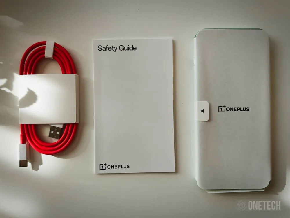 A la hora de hacer el desempaquetado y ver que hay dentro, ya nadie espera el cargador y es que desde que la Unión Europea toma cartas en el asunto, este es accesorio que ya no vemos incluido. Eso sí, aún seguimos contando con el cable de carga, el cual viene con conector USB tipo A en un extremo y USB tipo C en el otro. Además tenemos una guía de seguridad y la herramienta para extraer la bandeja de la nano SIM, siendo todo lo que tenemos con la compra del OnePlus 15R.