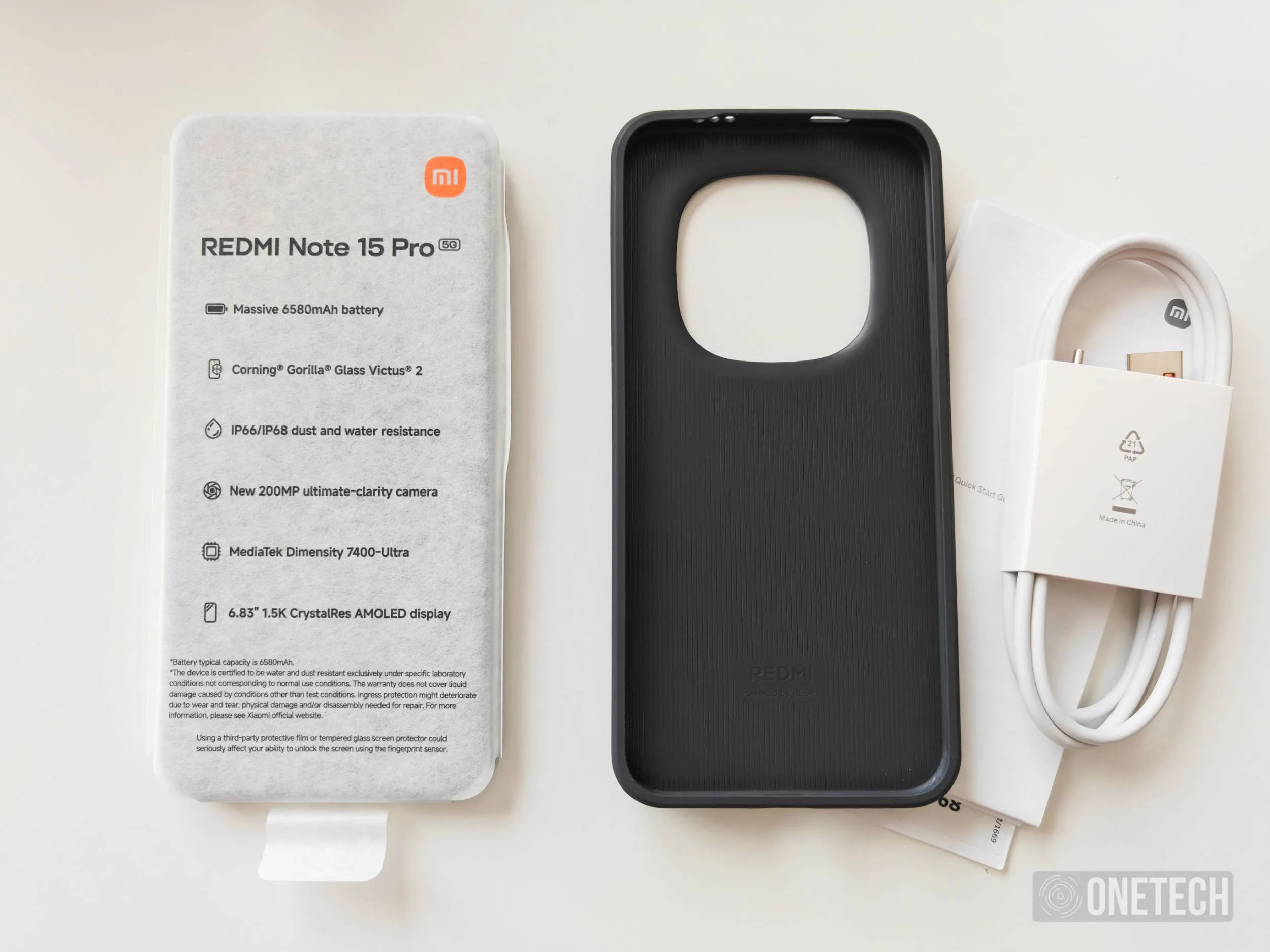 Ya hace tiempo que nos acostumbramos a ver que cuando compramos un nuevo smartphone, este viene sin el cargador. Algo que se debe a las ordenanzas de la Unión Europea para evitar el desperdicio tecnológico. Con la compra del Redmi Note 15 Pro 5G veremos que, si bien tenemos una funda de silicona gris oscura y el cable de carga, no tenemos cargador. Esto hace obligatorio tener que disponer de un cargador con 45W de potencia para aprovechar al máximo las capacidades del teléfono, o bien plantearnos tener que comprar uno.